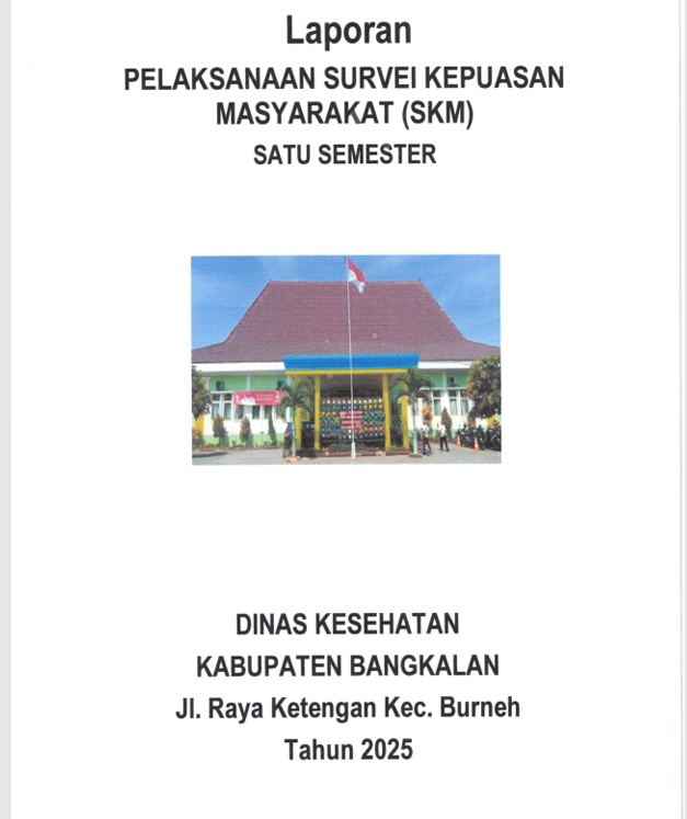 survei Kepuasan Masyarakat dilakukan secara mandiri pada Dinas Kesehatan Kabupaten Ban8kalan. dengan membentuk tim pelaksana kegiatan Survei Kepuasan Masyarakat. Tim pelaksana Survei Kepuasan Masyarakat (sKM) Dinas Kesehatan Kabupaten Bangkalan adalah tim yang sesuai DPA pada Kegiatan Pencapaian lndeks Kepuasan Masyarakat (lKM) Tahun 2025 (sebagaimana terlampir).